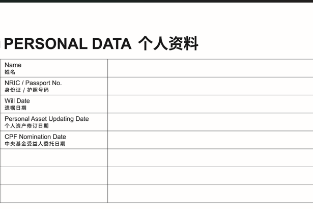 许多家庭在亲人离世后,面临的最大困境不是“没遗嘱”,而是“找不到资产”。银行账户不知在哪家、保险单不知放哪份、投资账号无从查找……这正是 Smartwills 推出”Asset Information Booklet” 的初衷。它不是冰冷的表格,而是一份完整的“资产地图”。透过系统化记录,你的每一项财产都有迹可循,从房产、基金到车辆、保险,都能被妥善整理与追踪。对于执行人而言,这本册子就是解锁遗产程序的关键指南,让复杂的继承变得清晰有序。