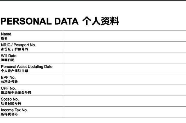 在遗嘱规划过程中,最大的问题从来不是“有没有遗嘱”,而是“资料不完整”。许多人将资产分散在不同银行、保险公司或投资账户中,结果当家属需要处理继承事宜时,却因为找不到相关文件而导致资产被冻结或遗失。Asset Information Booklet 的存在,就是为了解决这一盲点。